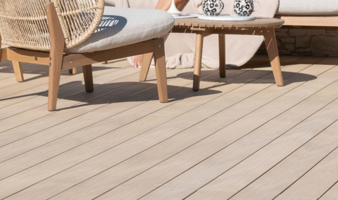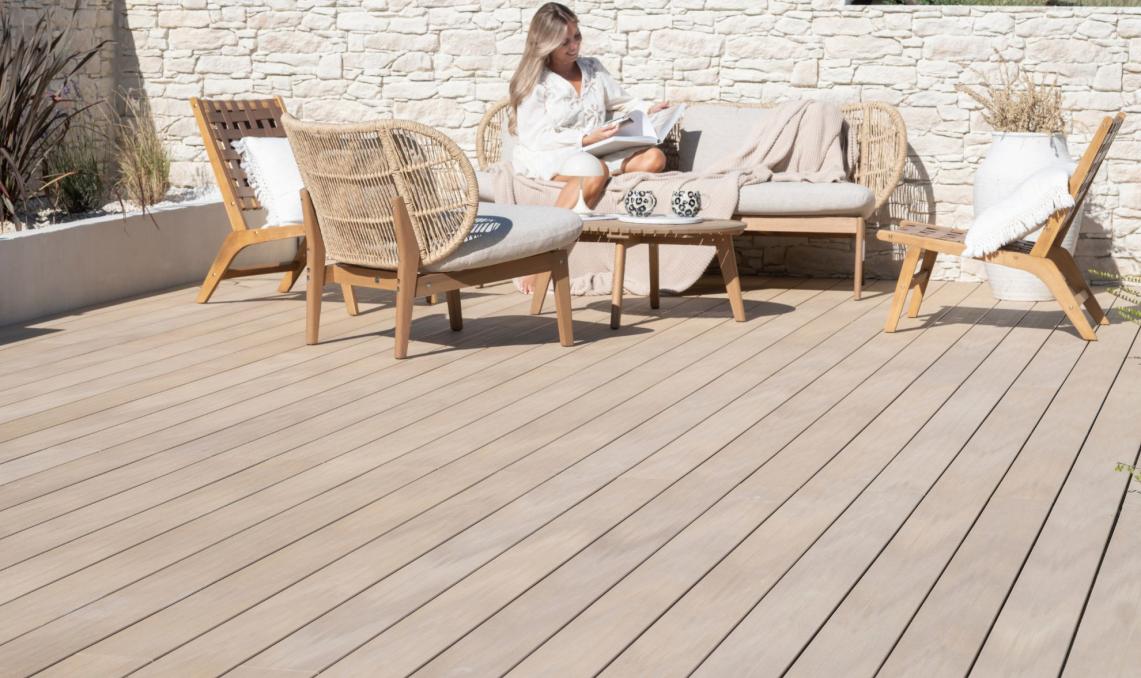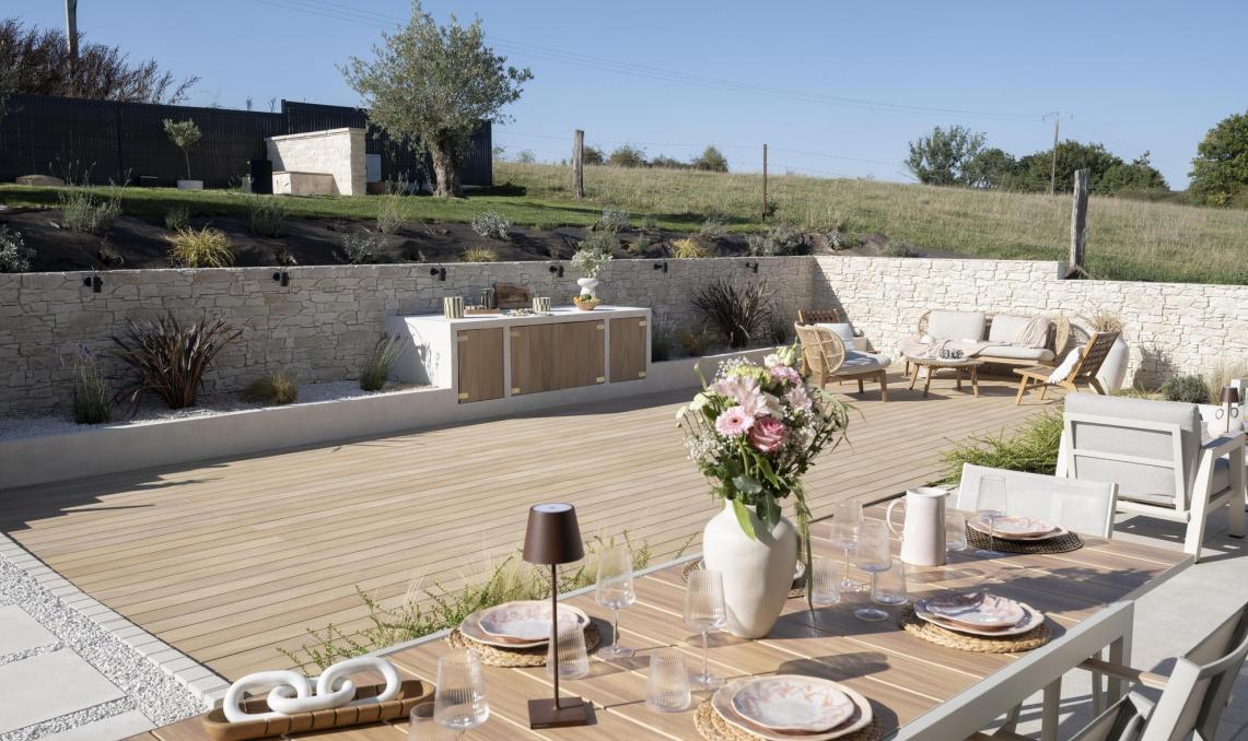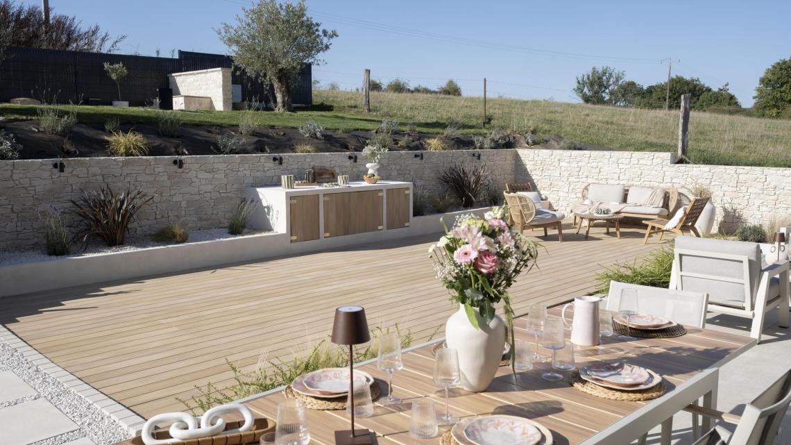 - en harmonie avec l’intérieur : la terrasse en Nuances Chêne clair vient rappeler le parquet chêne clair de la maison
