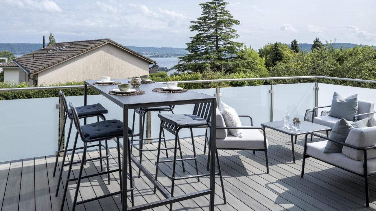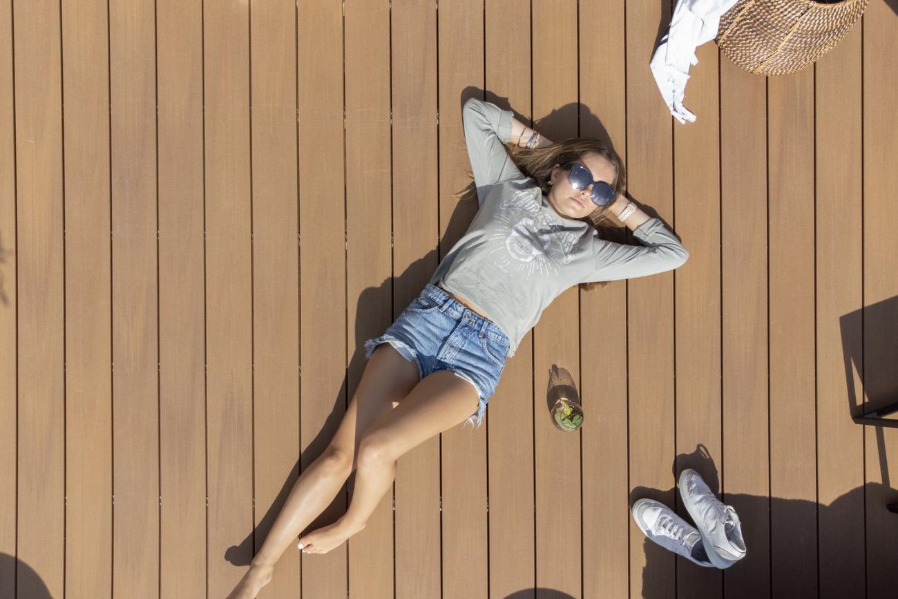 Chcete, aby barva vaší terasy z kompozitního dřeva zůstala v průběhu času beze změny? Naše koextrudované terasy Atmosphere zachovávají intenzitu barvy po celé roční období.