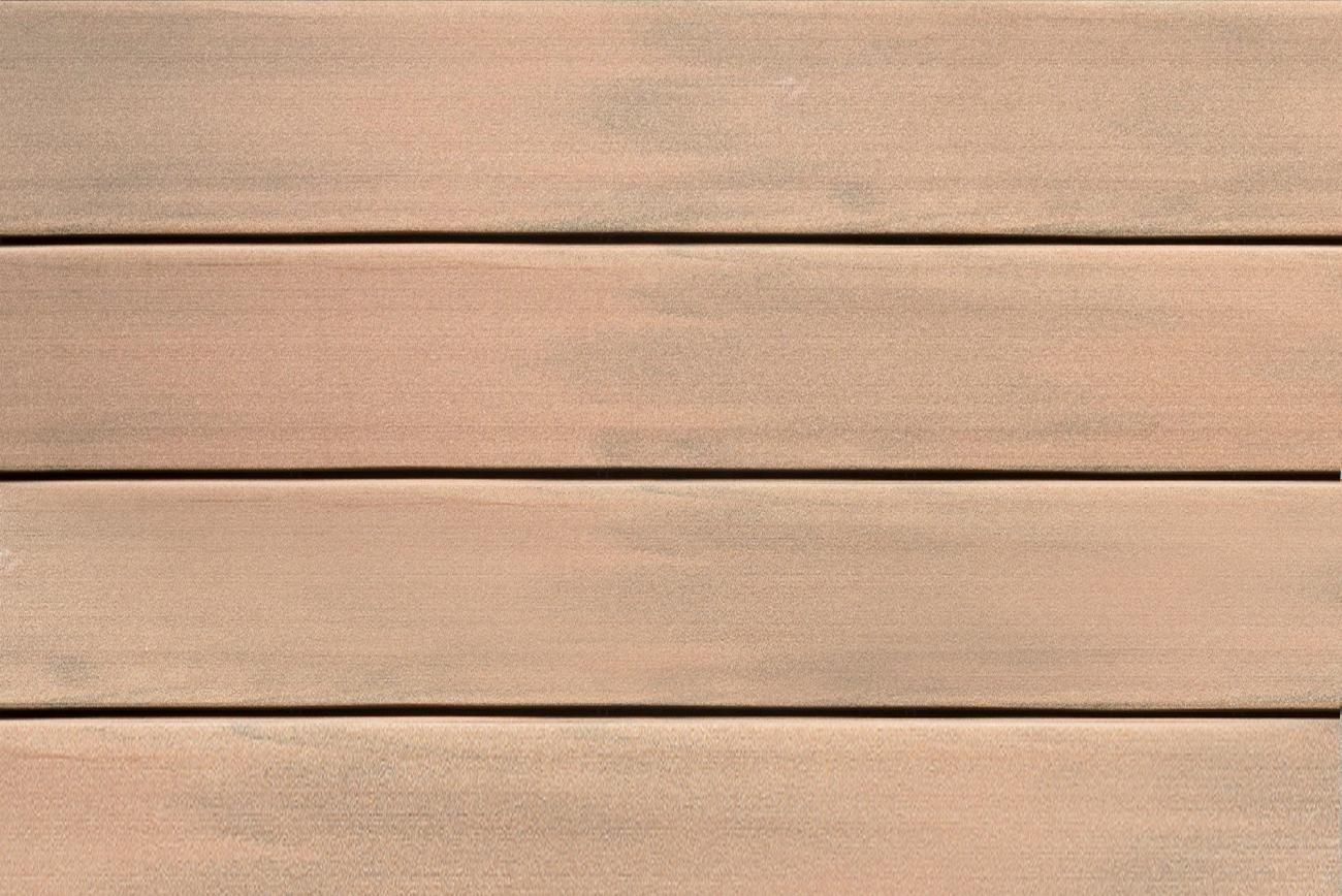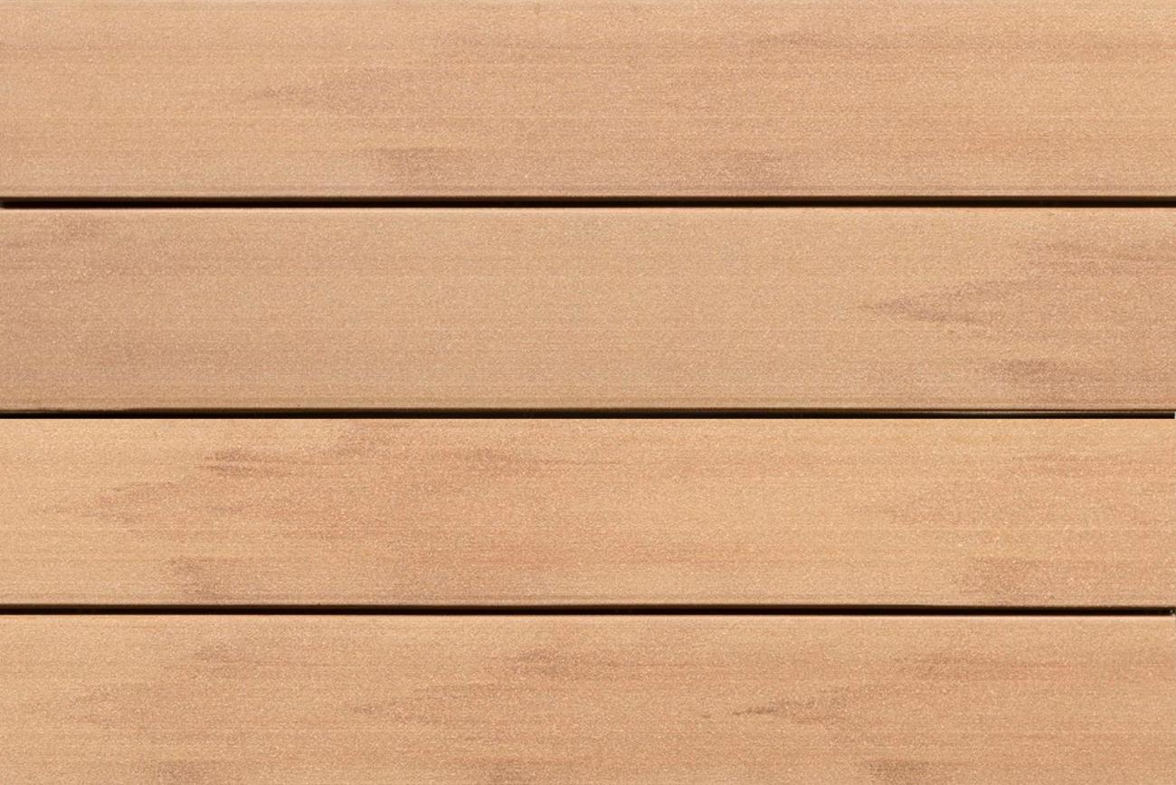 Hladká povrchová úprava našich terasových prken Emotion z kompozitního dřeva poskytuje skutečné pohodlí, zejména naboso. Na slunci oceníte u našich prken z kompozitního dřeva zlaté odlesky. Unikátní terasy Emotion z kompozitního dřeva jsou k dispozici ve světle hnědé (Savana) a tmavě hnědé (Equateur) a šedé (Taïga). V průběhu ročních období barevné rozdíly zůstávají a vaše terasa je stejně krásná a hřejivá jako kdykoli předtím.