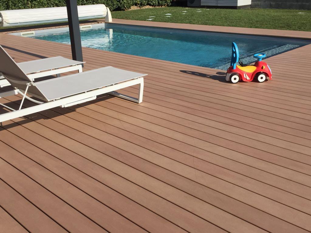 Šedá Emotion se dokonale snoubí s přírodními kameny. Zvolte hnědou Ekvádor pro její exotickou stránku. Díky své světlé barvě je terasové prkno Emotion z kompozitního dřeva v hnědé barvě Savana ideální pro bosé nohy. Světlá prkna jsou skutečně velmi pohodlná, jejich teplota na slunci odpovídá teplotě exotického dřeva. Jedná se o ideální profily na instalaci obložení bazénu. Nevadí jim chlór, sůl ani bazénové chemikálie a mají velmi dobrou protiskluznost naboso.