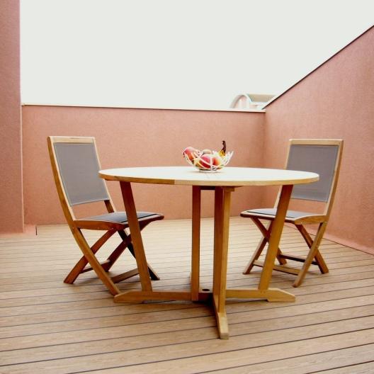Les lames Élégance et Émotion présentent une structure monoextrudée authentique. Sans enveloppe protectrice, l'aspect bois naturel reste visible et évolue au fil des saisons, nécessitant un entretien périodique adapté. La teinte se patine naturellement avec le temps. L'installation échelonnée, le positionnement de mobilier ou d'éléments décoratifs peut générer des nuances chromatiques entre les différentes zones.